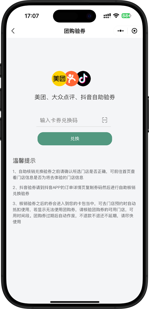 支持美团、大众点评、抖音核销